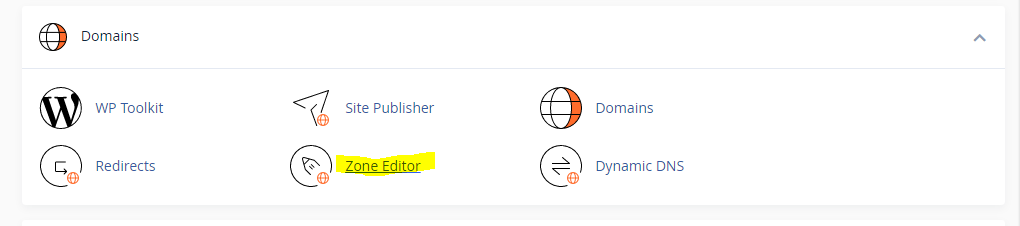 - Klik pada ikon “Zone Editor” di bawah kategori “Domains”.